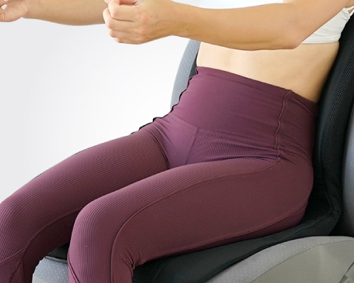 骨盤を適度に立てた状態で安定して保つ事ができます。背骨を正しく骨盤の上に乗せることのできる位置をシートが教えてくれるので、腰の負担を軽減します。頭を軽く保つ事ができるので、肩や肘もリラックスした状態で運転する事ができます。